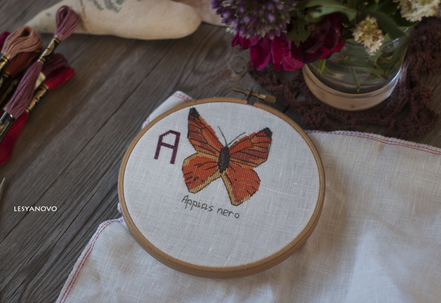 Нитки набрала заранее, чтобы нормально смотрелись вместе. Так что весь алфавит, несмотря на разноцветье должен выглядеть гармонично